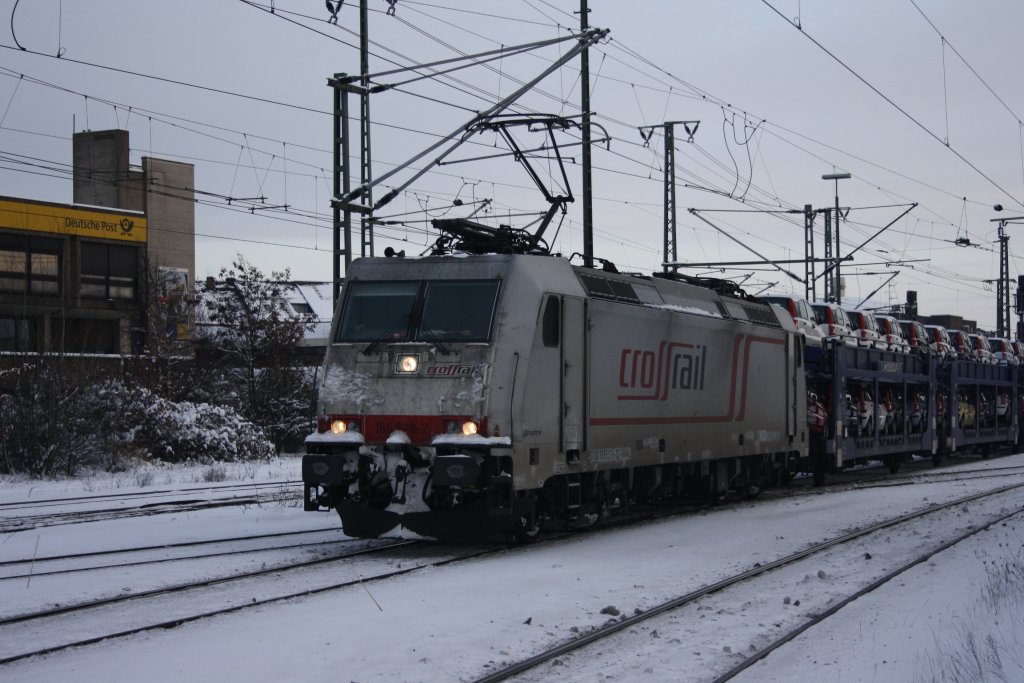 185 578 (Crossrail) mit einem Autozug von Fiat in Lehrte nein dies war keine Vater mogana. Es wurde am 04.01.2010 um 15:42 in Lehte geshen. Hoffe ich bekommen nochmehr Crossrail Loks. Im Raum Hannover.