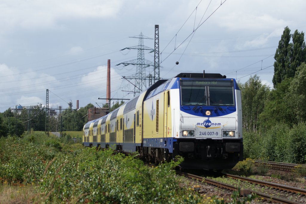 146 537 hat beim Schieben des metronom ME 81161 von Bremen nach Hamburg offenbar allerhand Schnee hinter sich aufgewirbelt; HH Hauptbahnhof, 06.01.2010