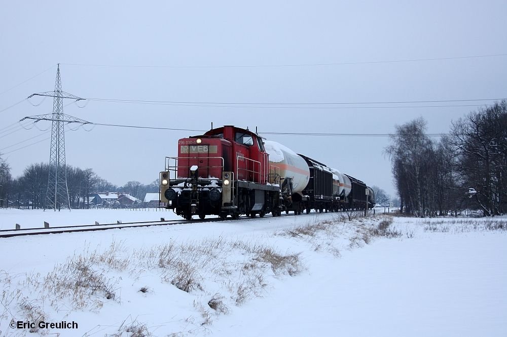296 030 mit der Übergabe von Walsrode nach Seelze kurz vor Bennemühlen am 6.1.10.