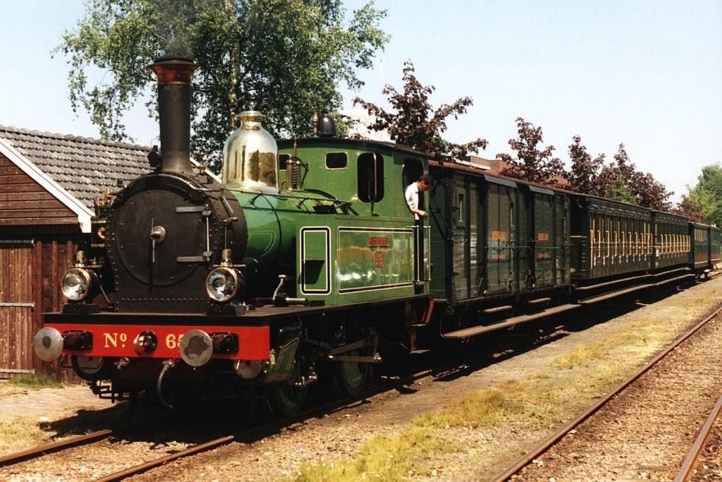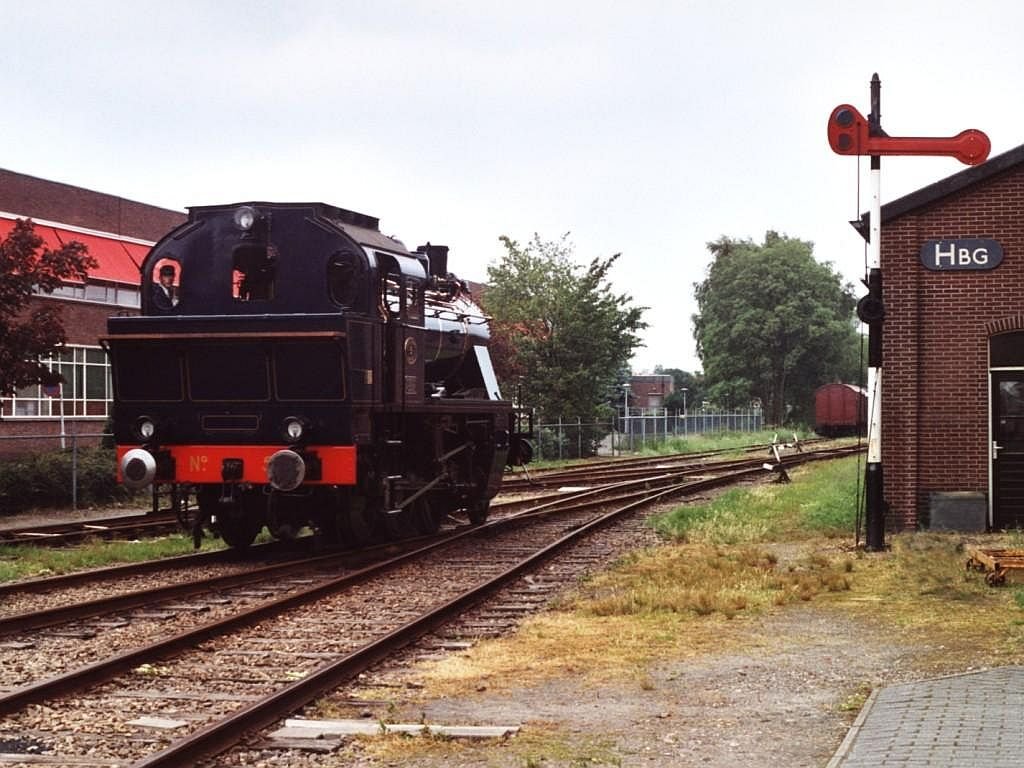 657 (SHM) auf Bahnhof Haaksbergen am 24-5-2001. Diese Lok ist auf eine Tiefladeanhänger von Hoorn (SHM) nach die Museumsbahn MBS in Haaksbergen gefahren. Die MBS hat nämlich keine Anschluß mit dem Eisenbahnnetz. Bild und scan: Date Jan de Vries.