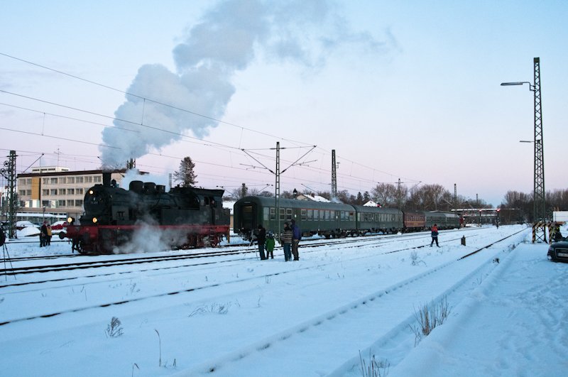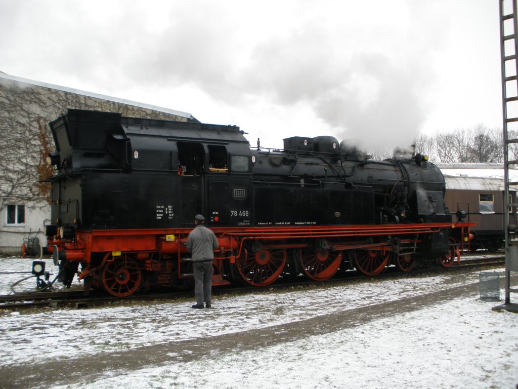 Br 78 468 während dem Abschmieren und Wasserwfassen in Nördlingen am 6.1.2010