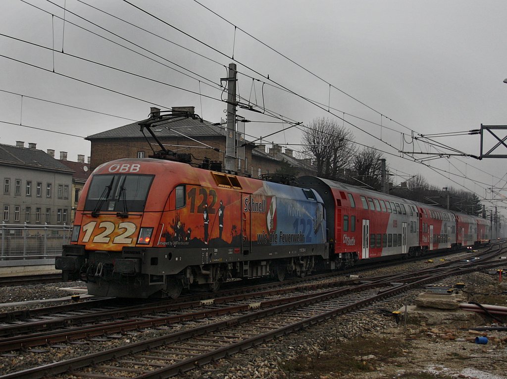 Endlich kam nach einer sehr langen Zeit die Siemens Lok nach Bregenz und auch nach einer langen warterei am Bahnhof bei eisigem Wind. Foto zeigt den EN 247 nach Wien West in Bregenz.