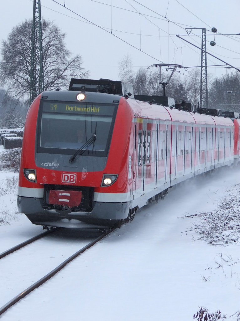 Ein ET 422 der S-Bahn RheinRuhr erreicht am 03.01.2010 den Hp Bochum-Ehrenfeld.