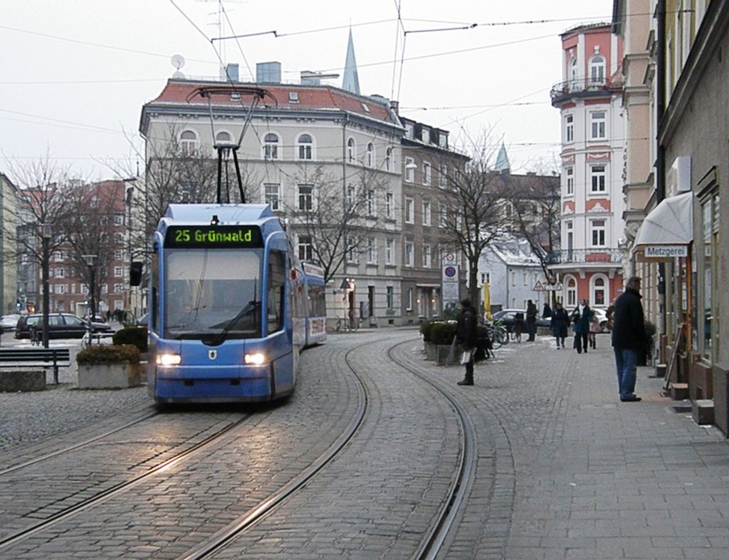 Eine Tram der Linie 25 in Haidhausen am Genoveva Schauer-Platz. 5.1.2010