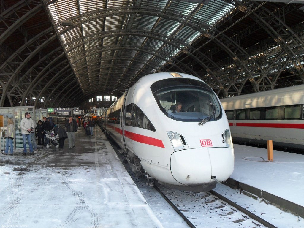 ICE 1650 aus Dresden verlässt am 5.1.10 den Mainzer Hbf mit (+23) in Richtung Wiesbaden.