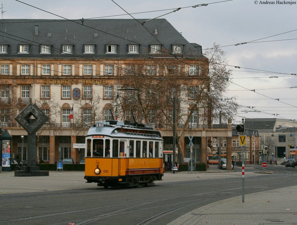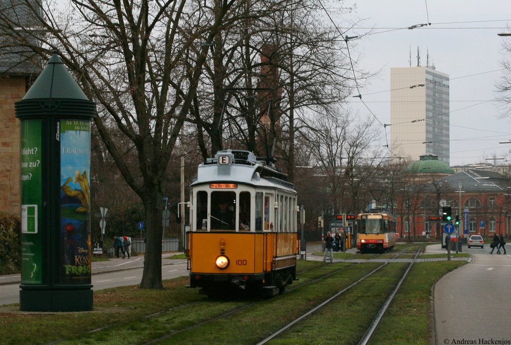Museumstriebwagen 100 auf der Ringlinie hier am Hauptbahnhof 13.12.09