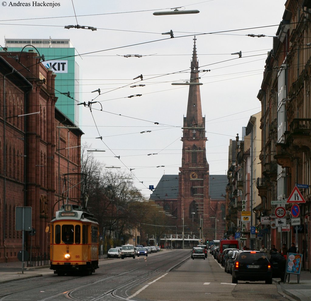 Museumstriebwagen 95 auf der Ringlinie hier in der Kaiserstraße 13.12.09