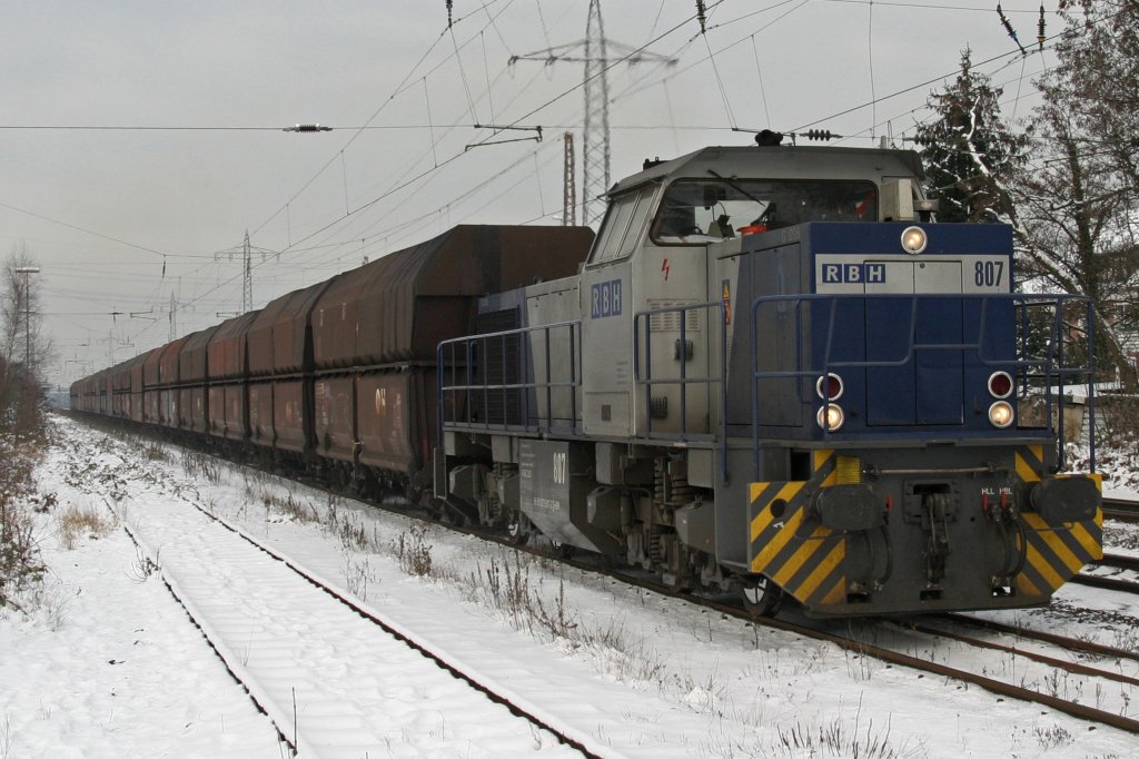 Hier schiebt die blaue V 22B Coil-Waggons durchs Gewerbegebiet zum Walzwerk Finow am 05.01.2010