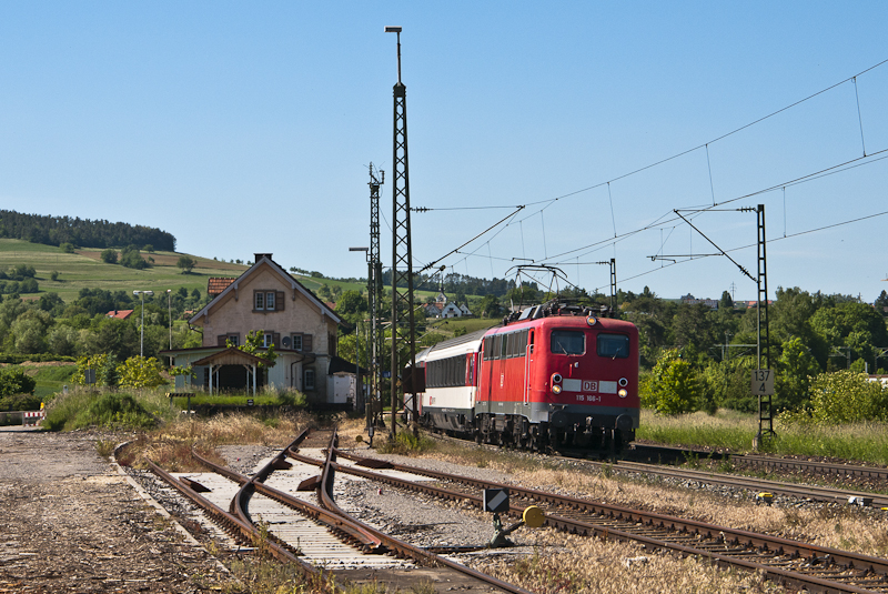 115 166-1 am 5. Juni 2010 mit IC 187 (Stuttgart Hbf - Zürich HB) in Welschingen-Neuhausen. Der Zug hatte +60.