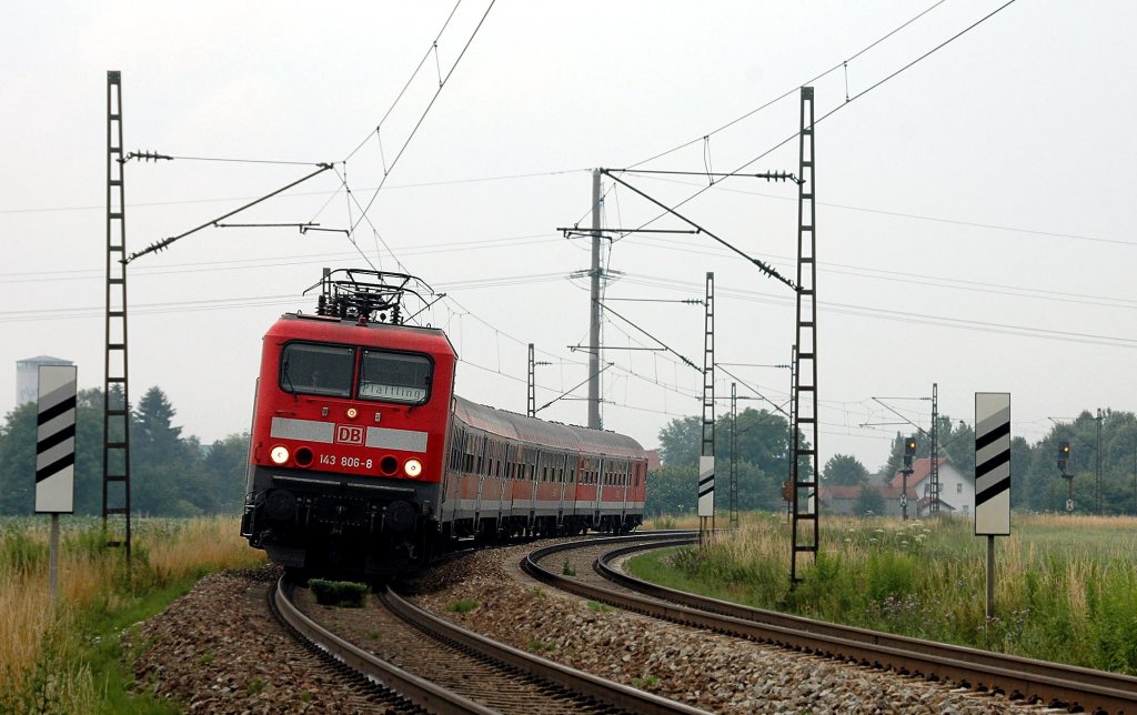 143 806 mit RB nach Regensburg Hbf, am 05.06.2010 kurz nach Plattling.