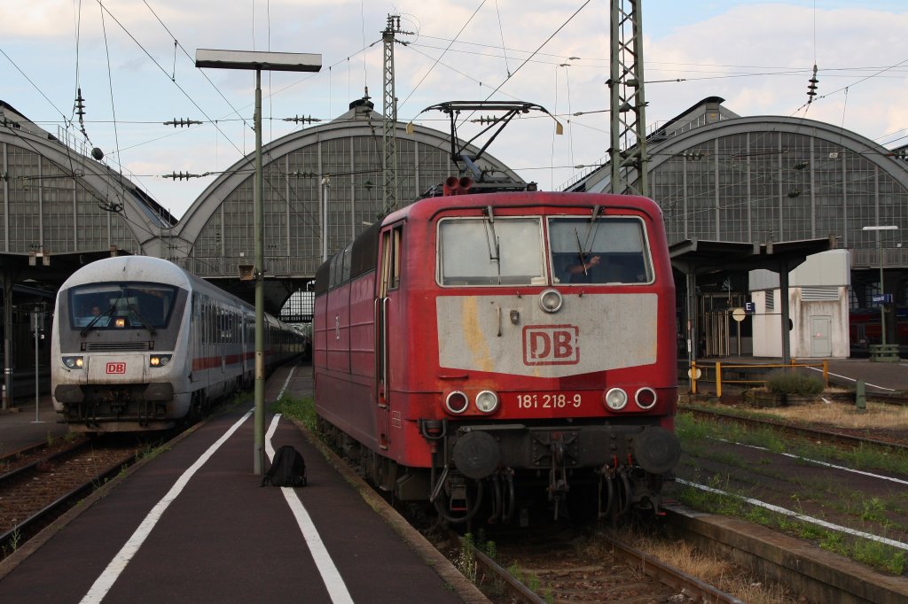 Die 218 156-8 in Orientrot steht abgestellt mit weiteren Kemptenern 218ern in Hamm Rbf am 06.06.2010 Foto von der Böschung aufgenommen