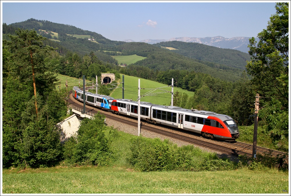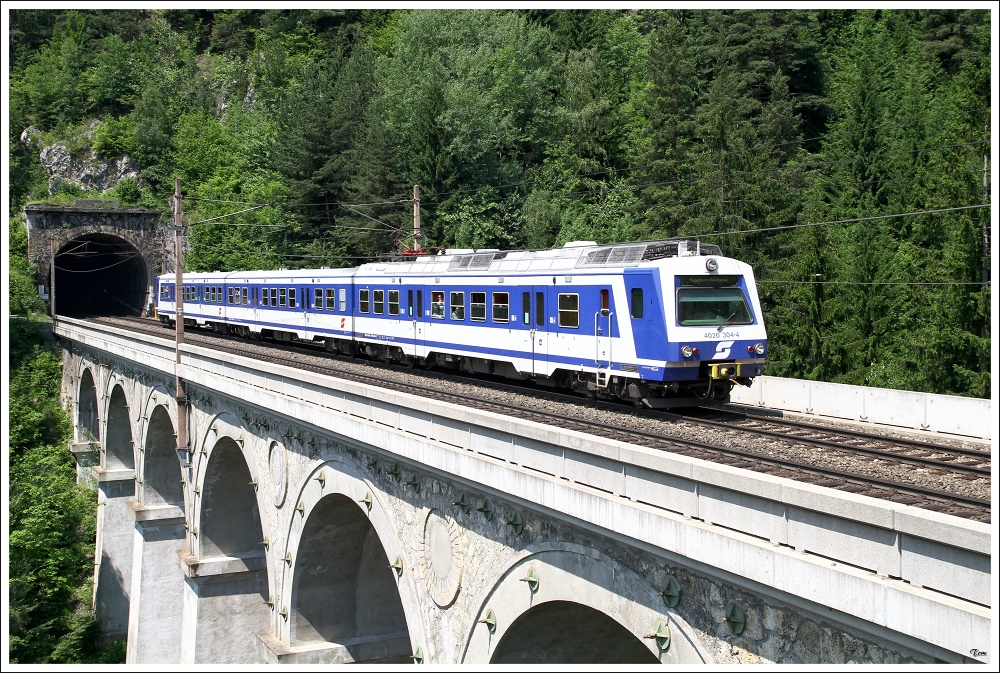4020 304 fährt als R 2960 von Mürzzuschlag nach Payerbach-Reichenau. Krausel Klause Breitenstein 3.7.2010