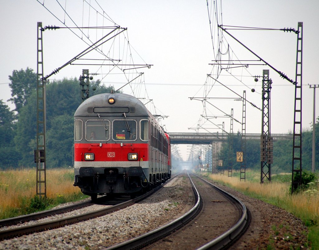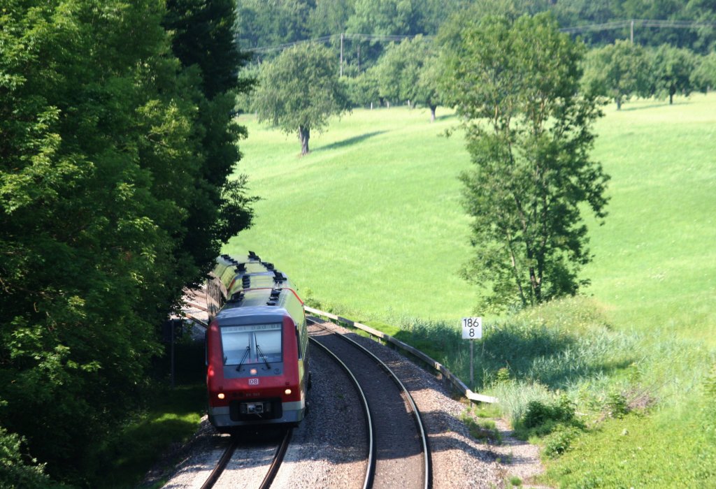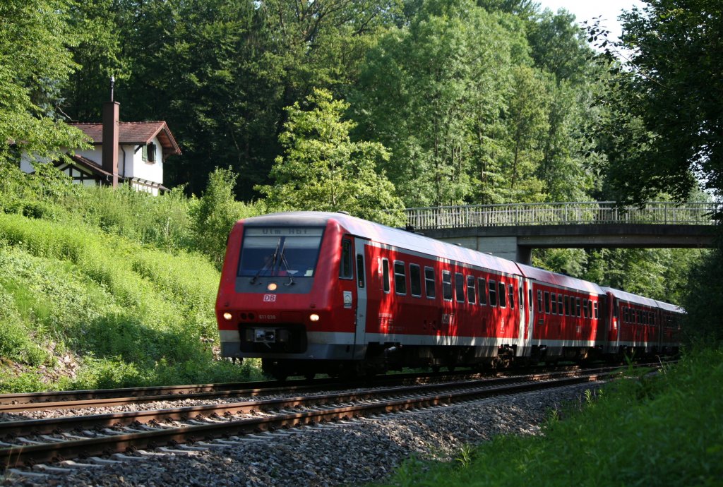 611 038 und ein weiterer Triebwagen der Baureihe setzten ihren Weg Richtung Ulm nach der Durchfahrt durch Meckenbeuren fort, 05.07.10
