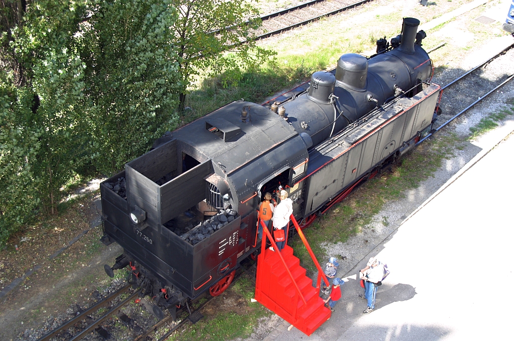 B&B 77.250 am Tag der offenen Tür aus Anlass "160 Jahre Ostbahn" am 11.September 2006 in der Zfltg. Wien Ost. Aufgenommen vom Schulungszimmer, welches an diesem Tag öffentlich zugänglich war.