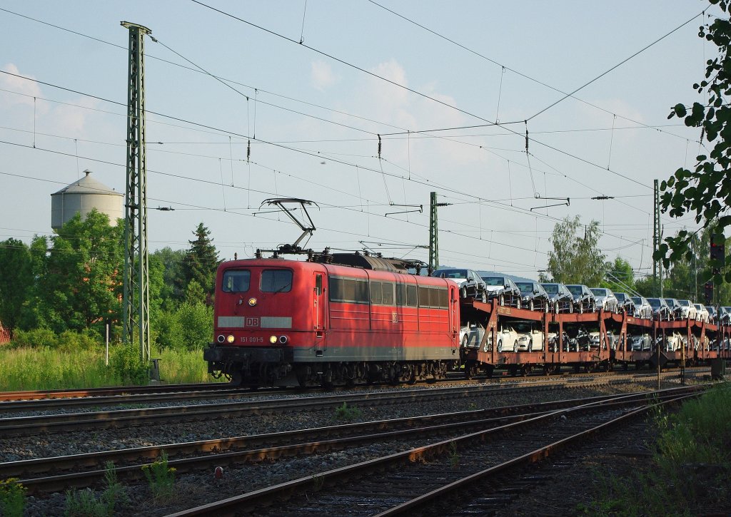 Das letzte mal wurde bemängelt, dass sie am Lokzug nicht gut zu erkennen war. Daher reiche ich ein Bild von 151 001-5, der ersten ihrer Art, nach. Aufgenommen am 03.07.2010 in Eschwege West.