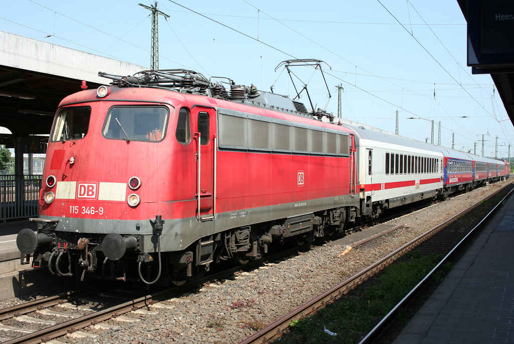 Die 115 346-9 stellt den ICE Ersatz mit 115 383-2 im Schlepp in Hamm bereit am 06.06.2010