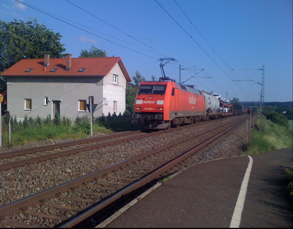 Die 152 058-4 durchfuhr am 11.06.10 den Bahnhof Gundelsdorf mit einem gemischten Güterzug.