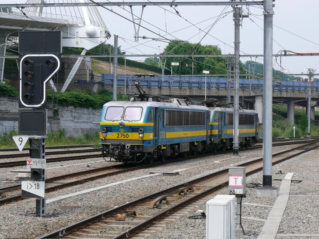 Die SNCB-Loks 2750 und 2744 fahren als LZ durch den Bhf Liège-Guillemins. Aufgenommen am 03/07/2010.