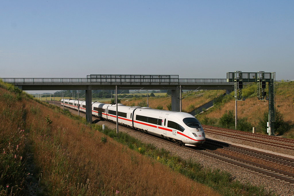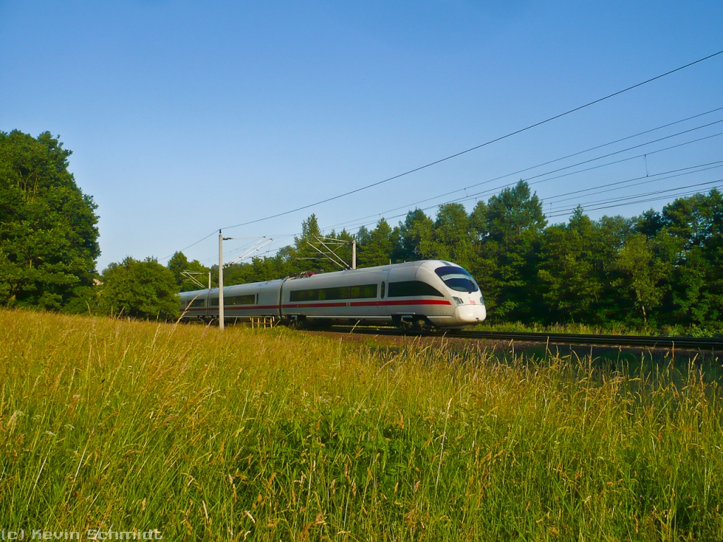 ICE 1602 aus München Hbf ist bei Saalfeld auf dem Weg über die idyllische Saalbahn nach Dresden Hbf über Leipzig. (24.06.2010)