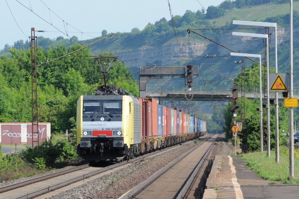 189 935 (ES 64 F4-035) zieht ihren Autozug in Richtung Süden. Aufgenommen am 24.06.2010 bei Albungen.