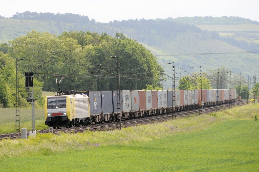 Woanders freut man sich der Tage über DB Tauris an IC's, hier über DB Tauris an Gz's :) 182 016-6 mit Containerzug in Fahrtrichtung Norden. Aufgenommen am 29.06.2010 in Eschwege West.
