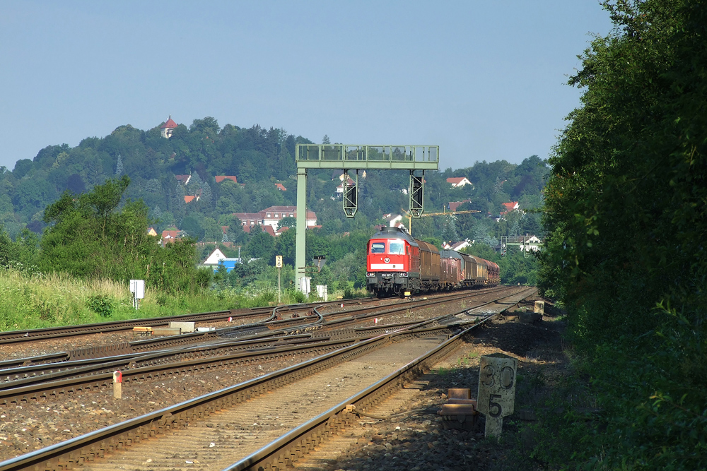 Warten auf freie Fahrt. 232 527-2 am 02.07.2010 bei Hersbruck.