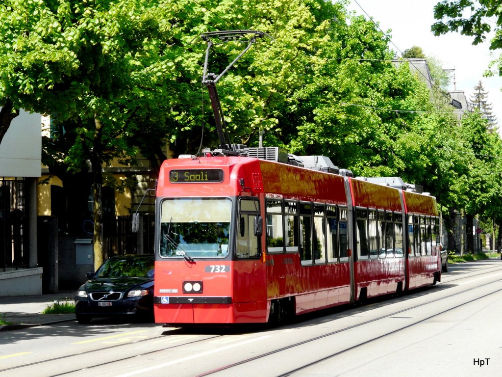 Bern Mobil - Tram Be 4/8 732 unterwegs auf der Linie 3 am 12.05.2010