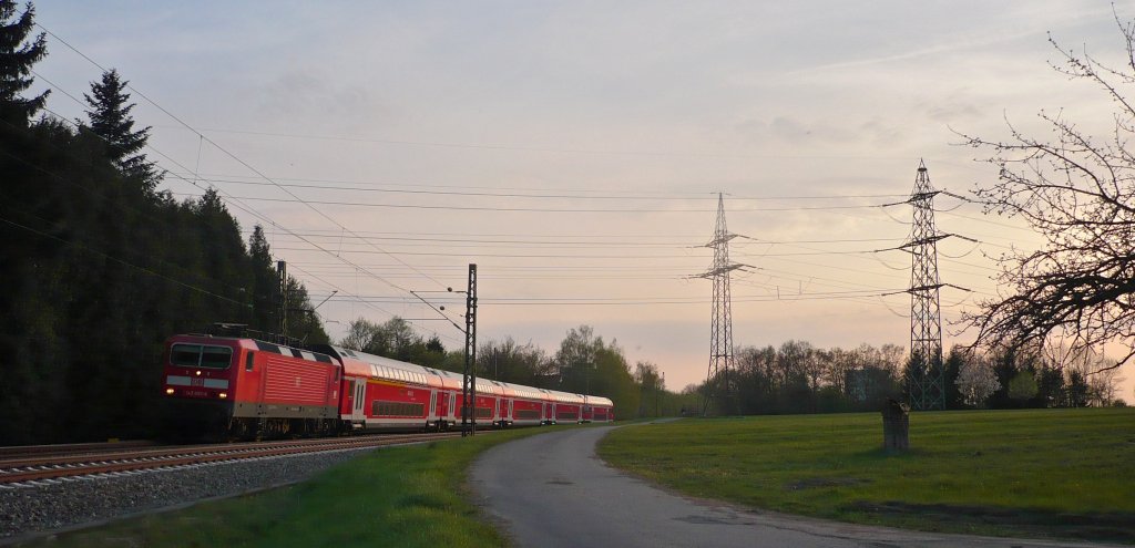 Da erschien sie plötzlich bei Abenddämmerung eines Tages, Ende April 010 - die Neckar-Alb-Bahn zur BW-Landeshauptstadt, hier bei RT-Sondelfingen.