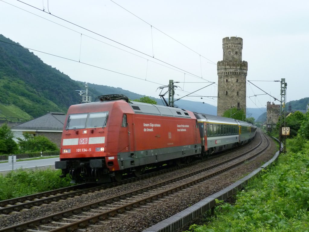 Am 17.6.10 fährt 101-134 mit dem EC 100 Chur-Hamburg Altona durch Oberwesel.