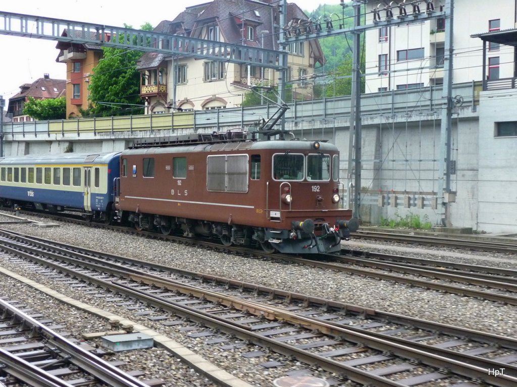 BLS - Re 4/4 192 vor Regio bei der einfahrt in den Bahnhof Spiez am 15.05.2010