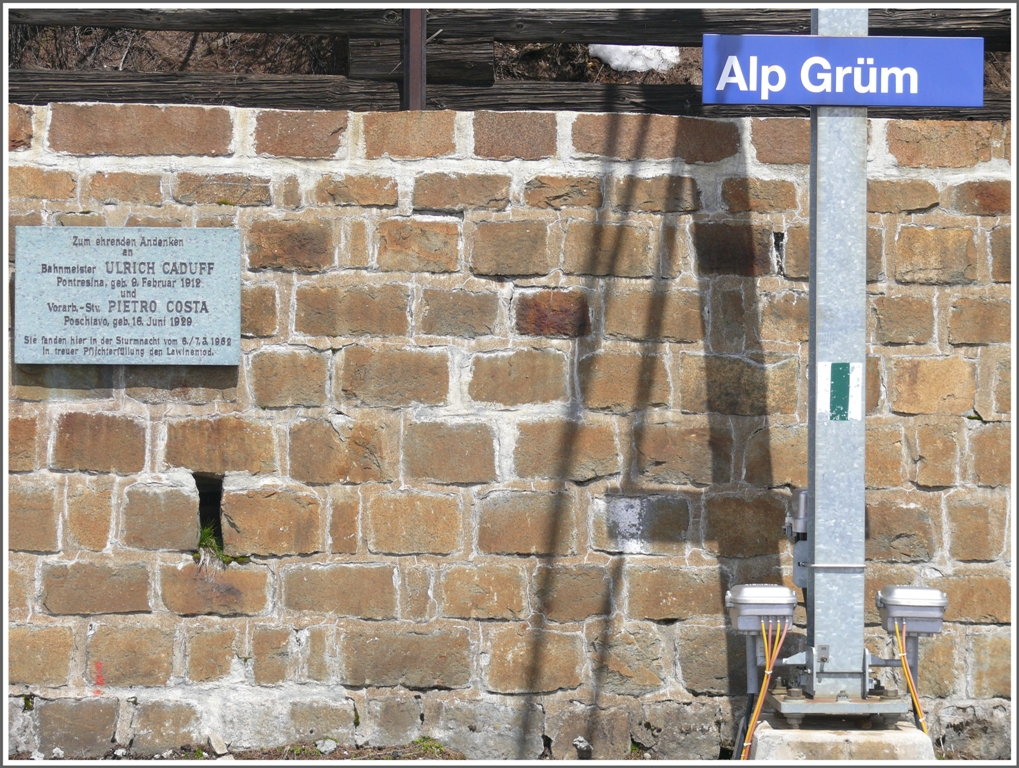 Die Arbeit am Berninapass ist hart und es drohen speziell im Winter allerlei Gefahren, wie diese Gedenktafel für zwei Lawinenopfer auf Alp Grüm beweist. (20.05.2010)