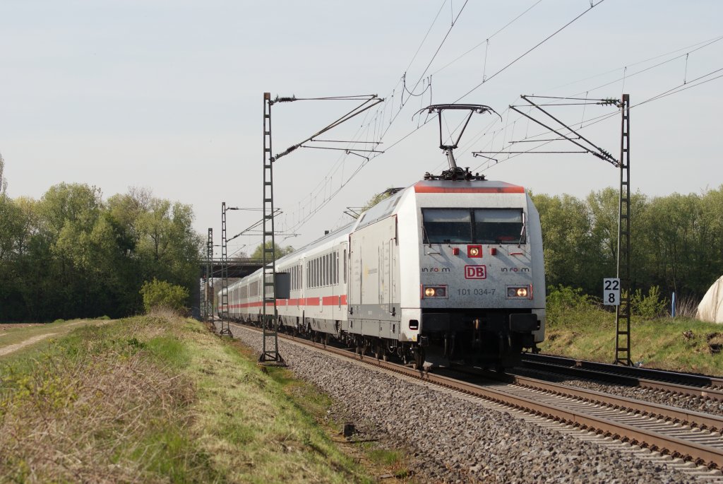 mal fremdbeleuchtet vom oben - 101 010 kommt mit dem EC aus Binz nach Stralsund am 23.05.2010