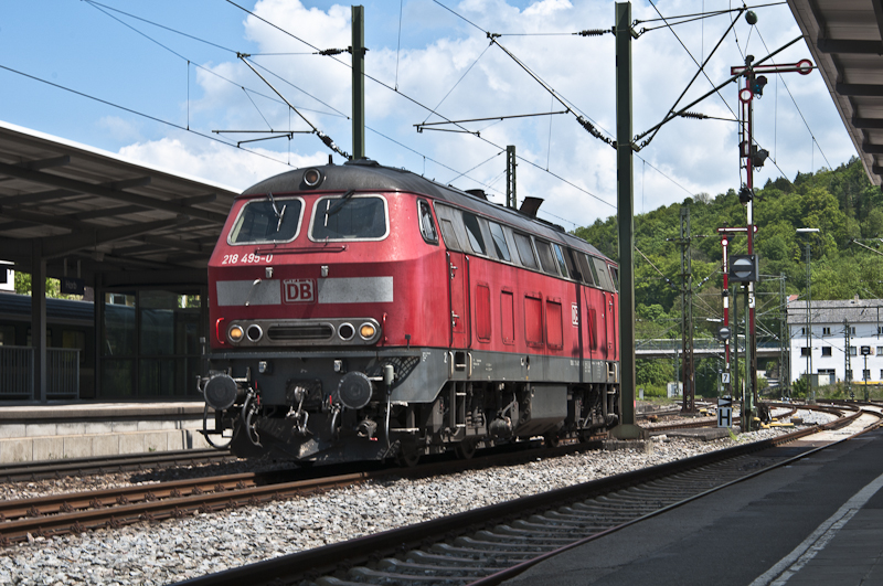 218 448 verlässt Hannover HBF mit dem RE14309 am 1.6.10. Man sieht sogar ein leichtes "V" aus den Abgasrohren.
