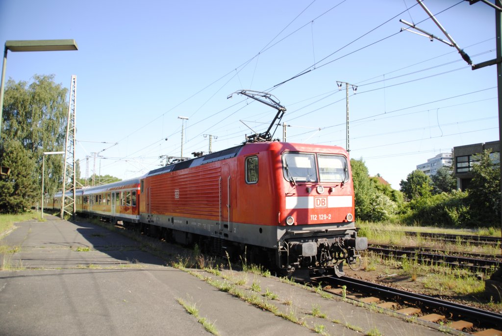 112 129-9, verlässt Lehrte am 17.06.10 abweichend auf Gleis 11.