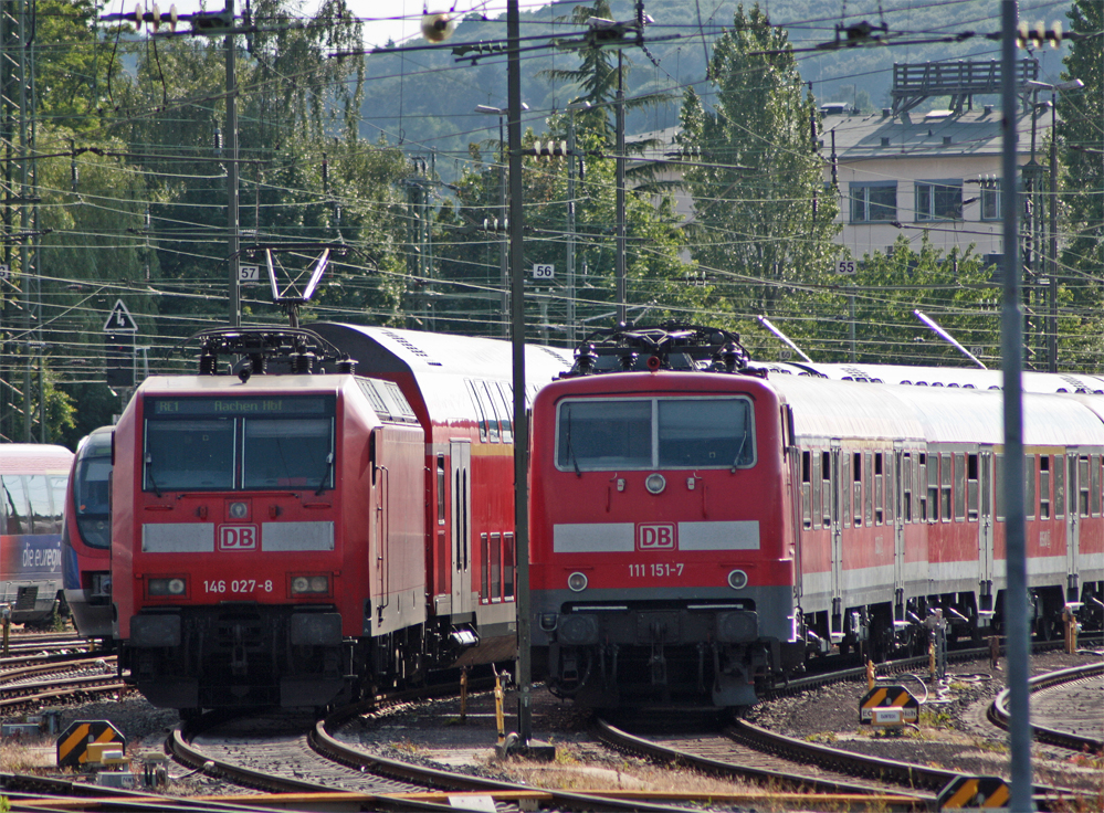 111 147-5 mit der RE4 (10426) aus Dortmund bei der Einfahrt in den Aachener Hbf, Grüße an den Tf, 11.6.10
