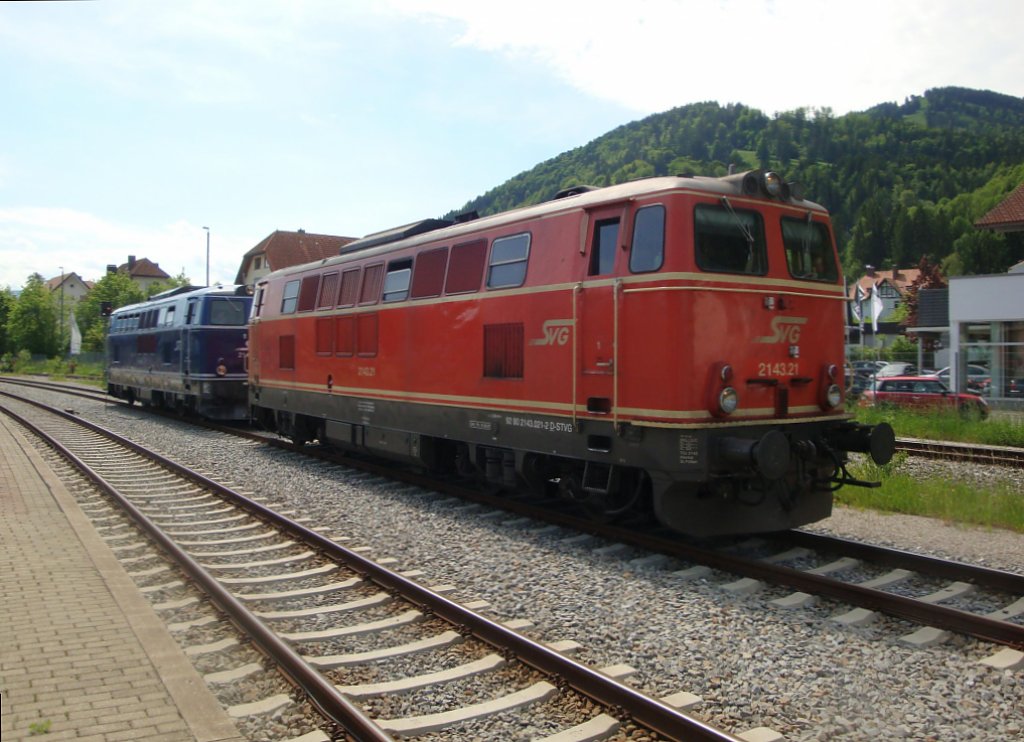 2143.21 mit Schwesterlok 2143.18 am 08.06.2010 in Immenstadt.