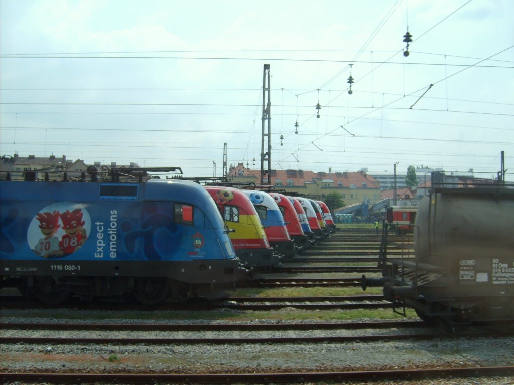 Die Lokparade der EM-Loks in Wien Penzing aus der vorbeifahrenden S50 2008 fotografiert.