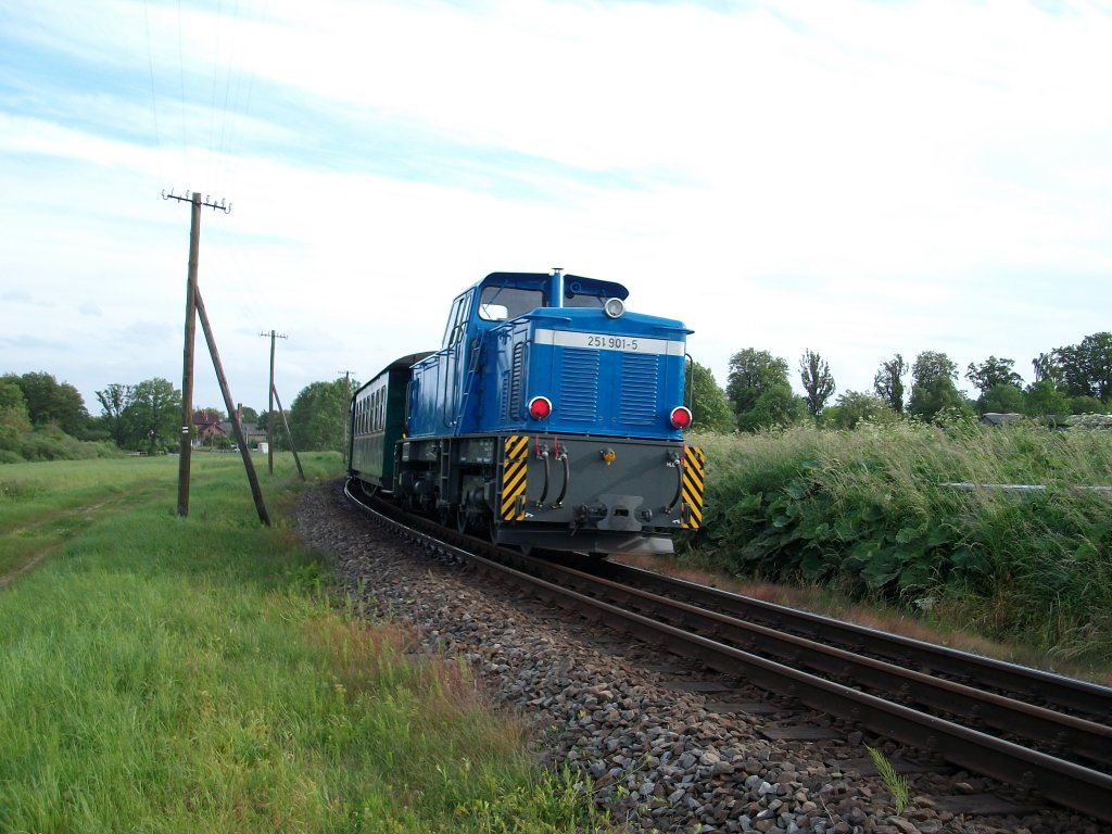 Obwohl der Dieselmotor von 251 901 läuft,ist die 251 nur als Schlußlok nach Lauterbach Mole unterwegs.
