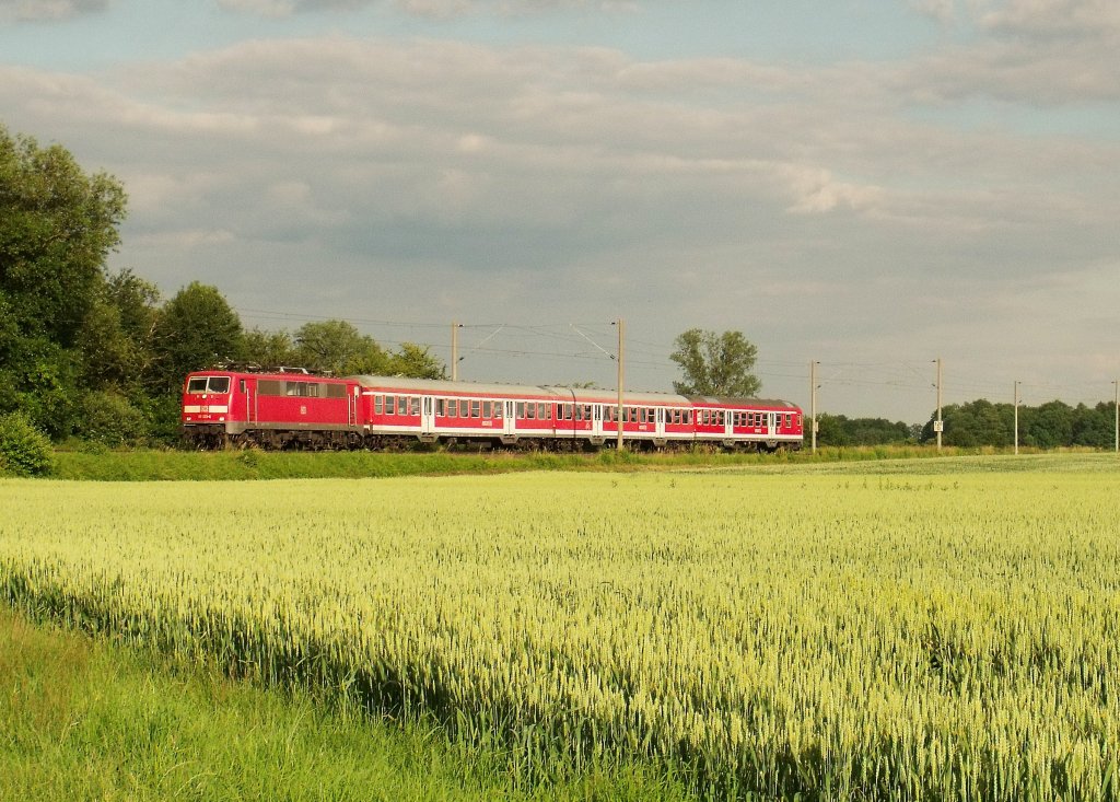 Wenige Minuten nachdem ich am 28.5.2010 ein Sonnenbild eines ICs kurz vor Göppingen auf der Filsbahn anfertigen konnte, entstand diese "sonnenlose" Aufnahme von 146 218-3 mit einem aus Doppelstockwagen gebildeten Regionalzug nach Mosbach-Neckarelz.