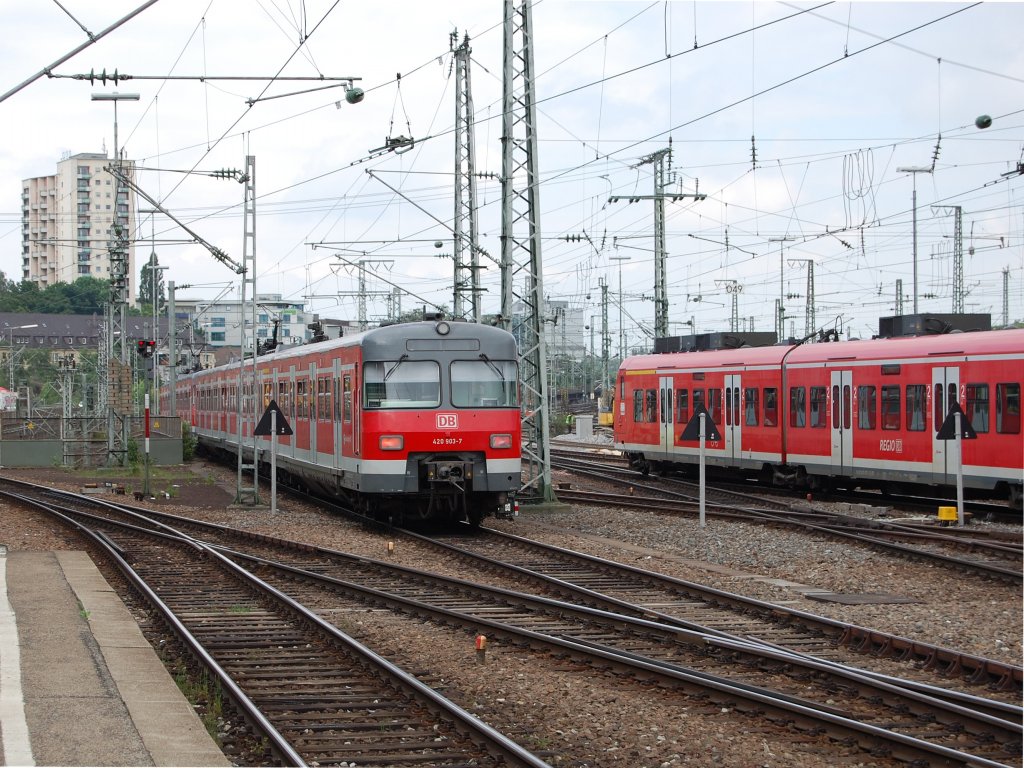 Am 27.5.2010 konnte der alte Stuttgarter Hbf mal wieder zeigen, wie leistungsfähig er noch ist, denn aufgrund einer Störung im S-Bahntunnel fuhren ein paar S-Bahnen  von oben  ab. So unter anderem auch 420 903-7, welchen ich hier bei der Ausfahrt aufnehmen konnte.