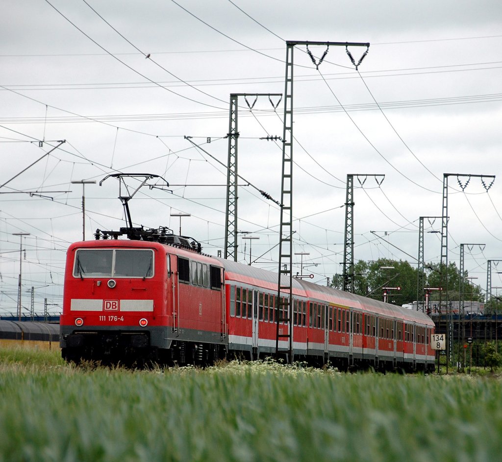 111 176 mit RB von Regensburg Hbf nach Plattling am 02.06.2010 bei der Durchfahrt durch Regensburg Ost.