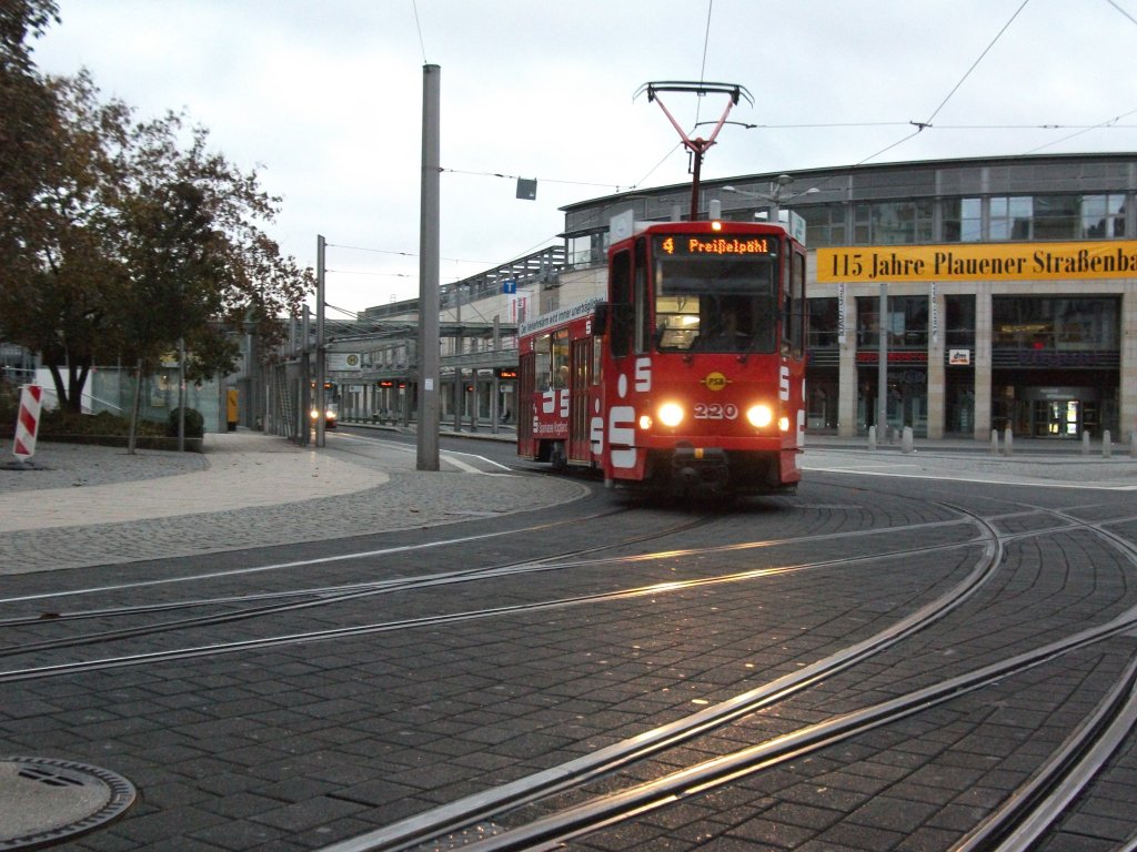 Aufgenommen am 26.09.2009 am Tunnel. Der TW 220 fährt als Linie 4 nach Preißelpöhl.
