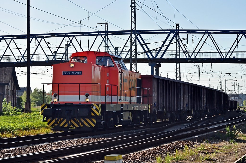 Locon 209 verläßt am 03.06.2010 den Bf Stralsund Richtung Rügen