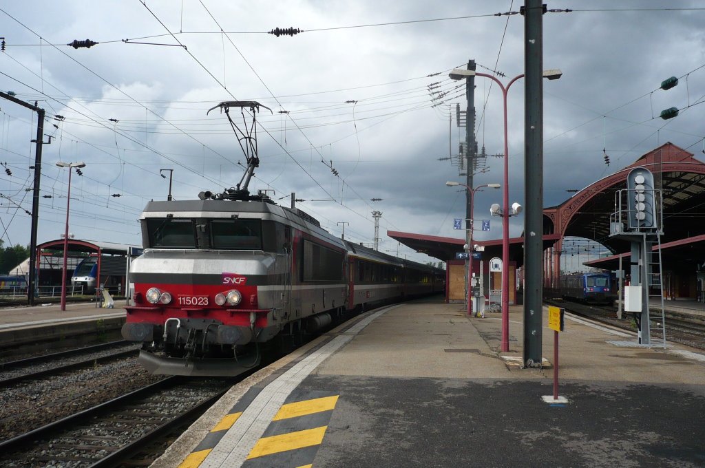 Auch der hier darf sich als stolz erweisen, für ter Lorraine fahren zu dürfen. Das Bild verdeutlicht uns, die Ausfahrt des RE 36513 nach Pont St Vincent. Los geht´s hier in Nancy am sonnigen 29.05.10. Das tosende Gedröhn verleiht dem Zug seine "Originalität".