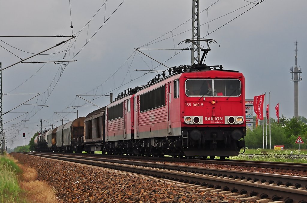 Letztes Bild aus Saarmund vom 25.05. zeigt dann die 155 135-7 Richtung Seddin.