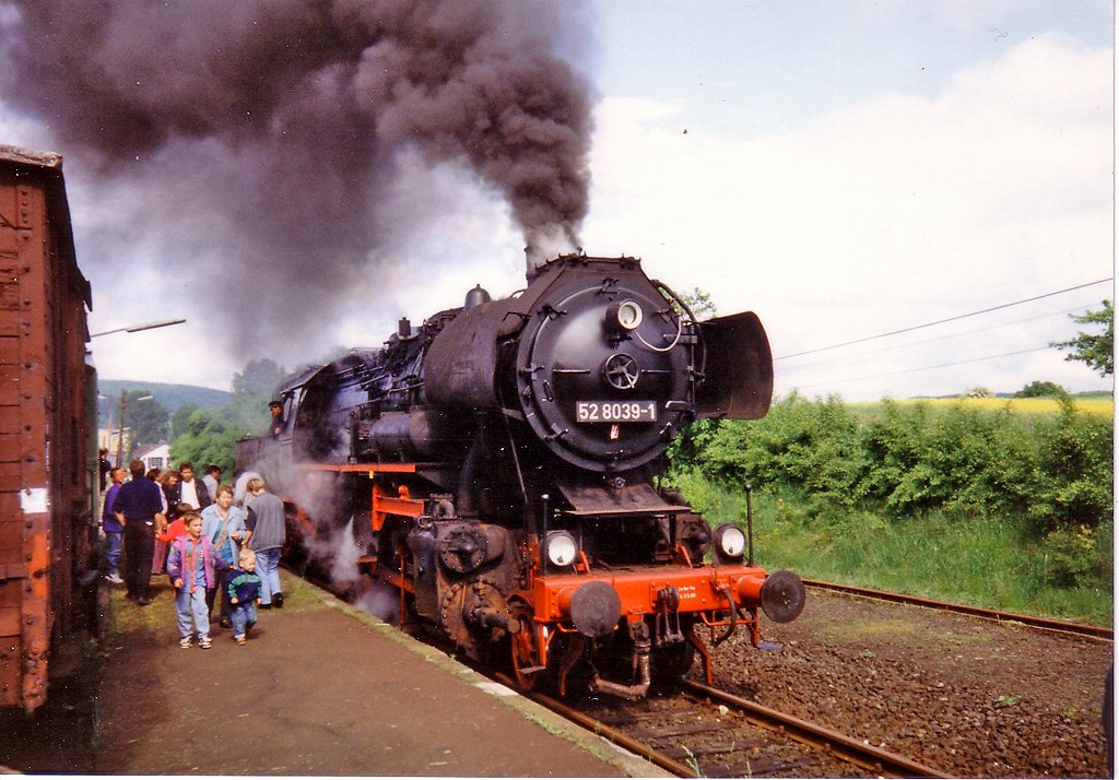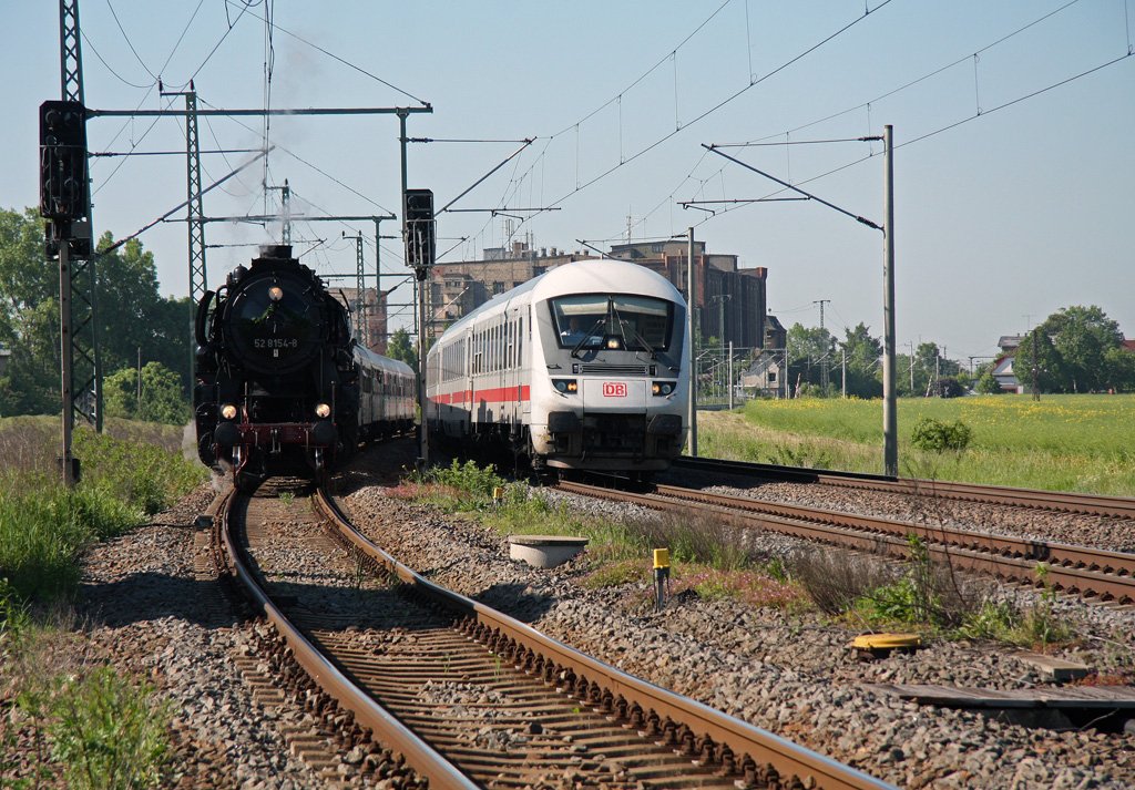 Im Bahnhof Niemberg kam es am 05.06.2010 zu einer Überholung des Leipziger Museumszuges mit 52 8154-8 durch IC 2046 nach Köln.