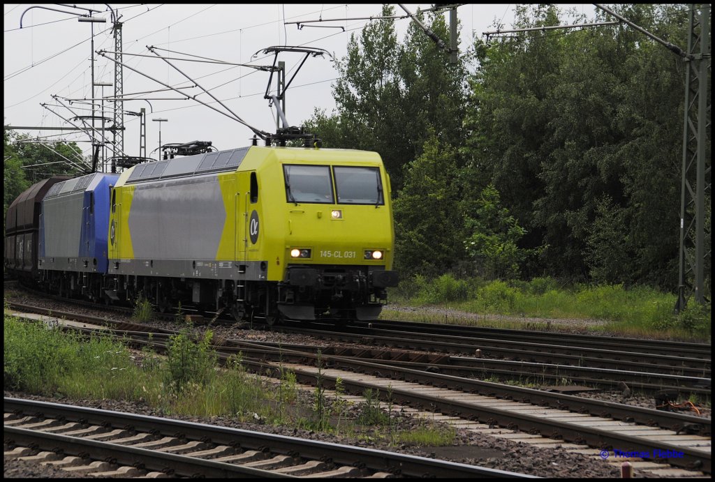 am Berliner Aussenring in der Wuhlheide am Nachmittag des 05.06.2010 Alpha-Trains 145-CL 031+145-CL 202 in Diensten von DB Schenker mit dem Erzzug Hamburg - Ziltendorf