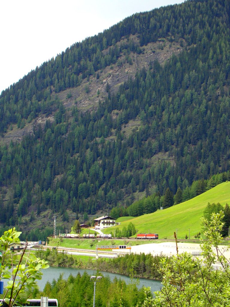 Tandem bespannte Güterzug (1144), kurz vor Brennersee, 03.06.2010
