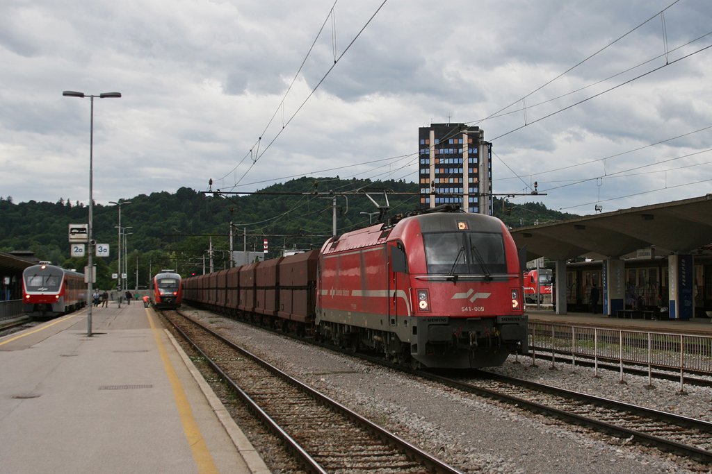 1116 100 + 1063 015 + 1044 020 + 1063 022 + 1042 041 + 1142 rollen als Lokzug 89208 langsam in Richtung Ausfahrsignal. Knittelfeld 5.6.2010