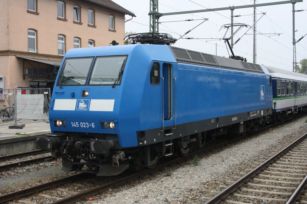 Am 16.05.10 wartete 145 023-6 der Pressnitztalbahn in München - Moosach mit ihrem Sonderzug anlässlich des Kirchentages in München. Weiter gings Richtung München - Ost. Ein großes Dankeschön gilt dem Tf.